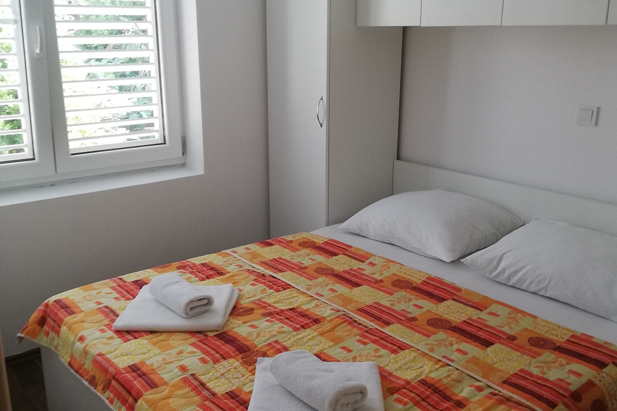 Apartman 5 (2+2), 30m2, također je na 2.katu, ali na sjevernoj strani Vile. Nema pogleda na more, niti balkona. Apartman ima spavaću sobu s bračnim krevetom, a u dnevnom boravku je kauč koji se može razvući u ležaj za dodatne dvije osobe.