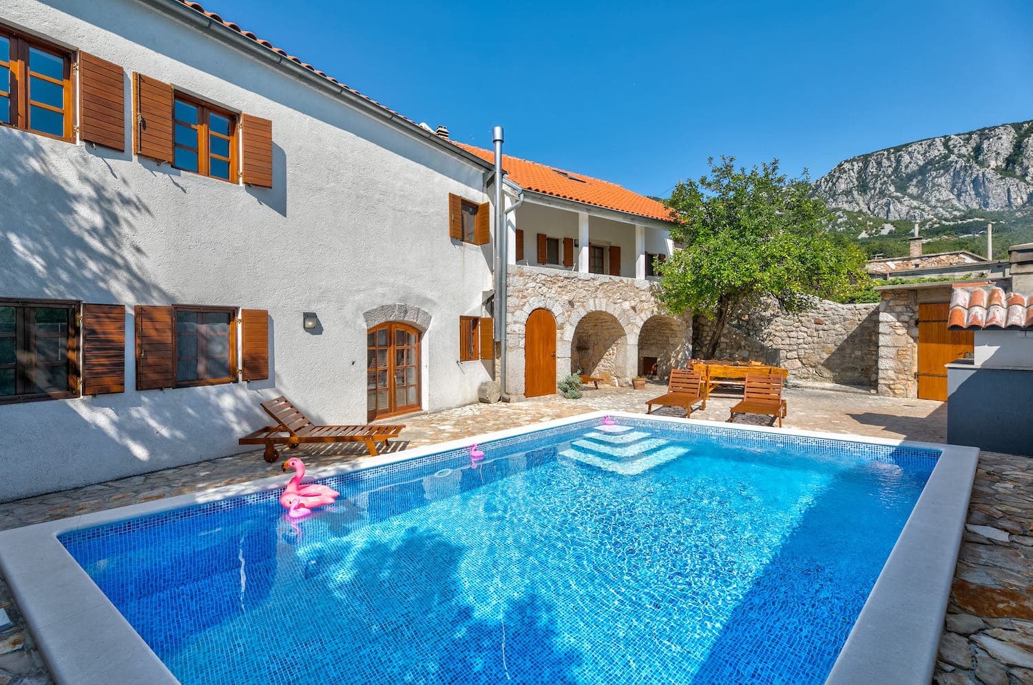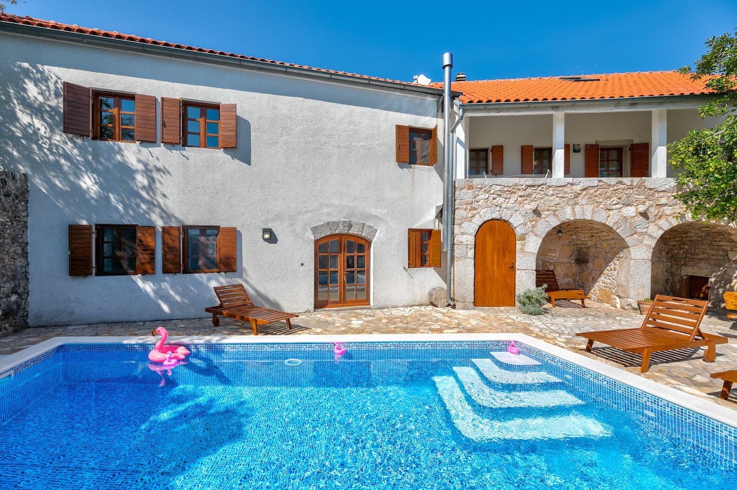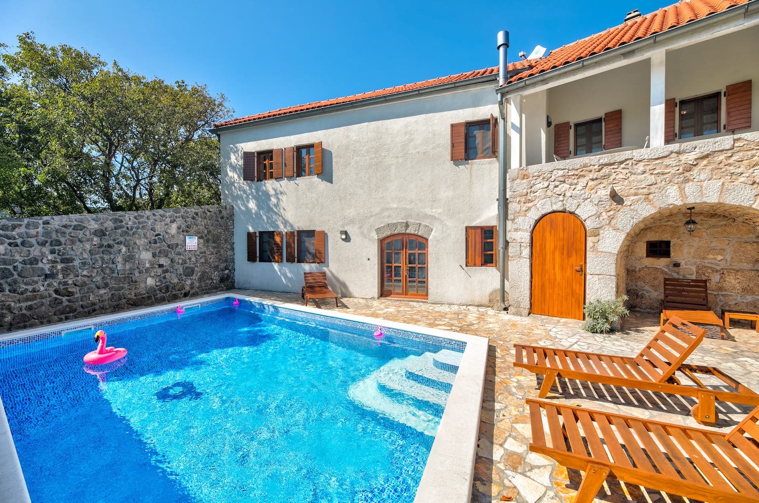 Nina je stara kamena kuća, koja je upravo obnovljena s velikom ljubavlju i pažnjom - staro je oživjelo, a moderno uskočilo. Idealan odmor za obitelj ili bliske prijatelje: kuća sa 4 spavaćih soba, 3 kupaone, velikim bazenom i osiguranom privatnošću. Kuća pruža smještaj za 10+2 osobe, a svaka prostorija ima svoj klima uređaj i Tv Sat. Wi-fi je osiguran, kao i parkirno mjesto. U blizini (500m) nalaze se lokalne trgovine, pekare, pošta, kafići. Kućni ljubimci su dobrodošli uz nadoplatu.