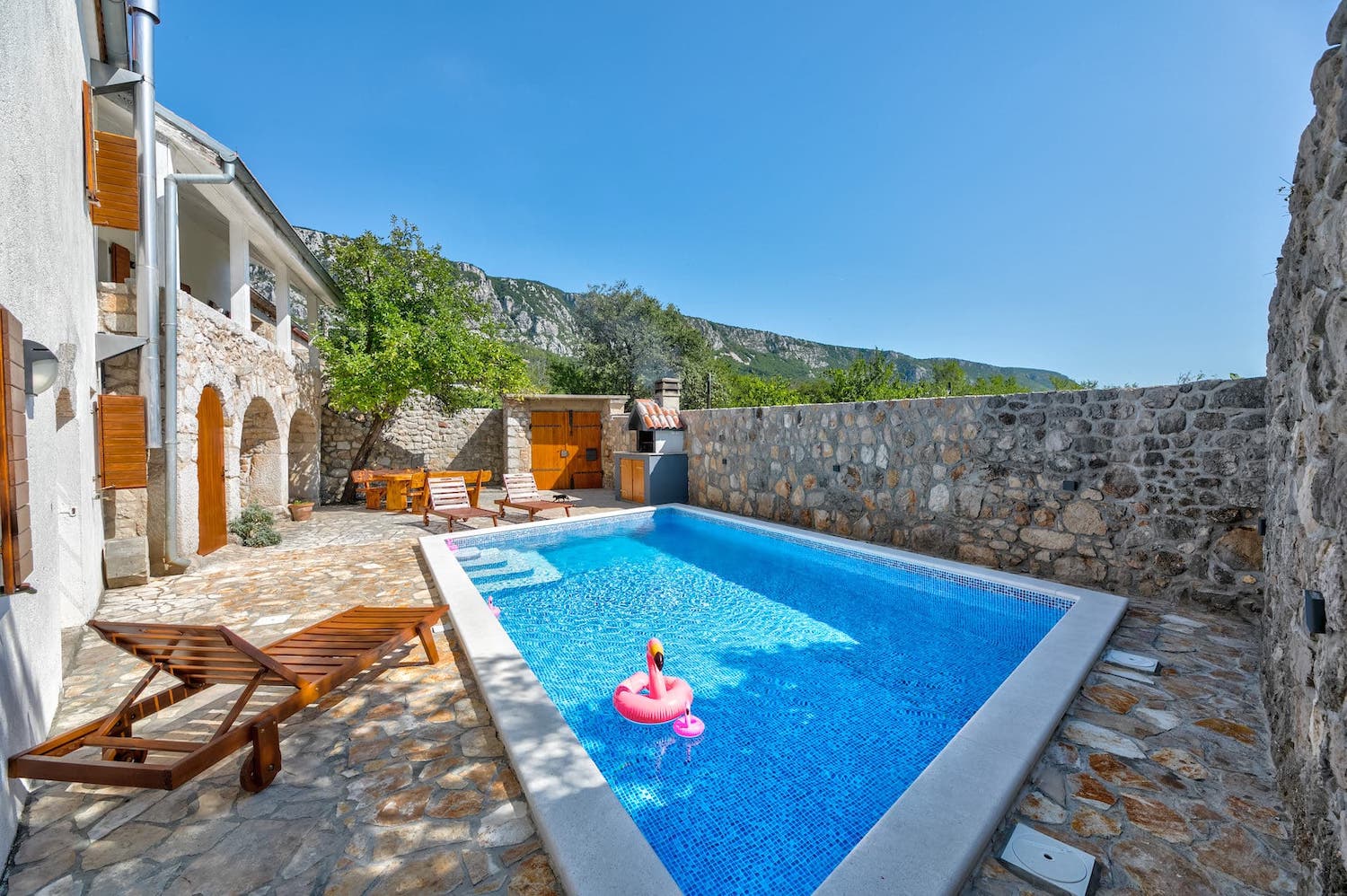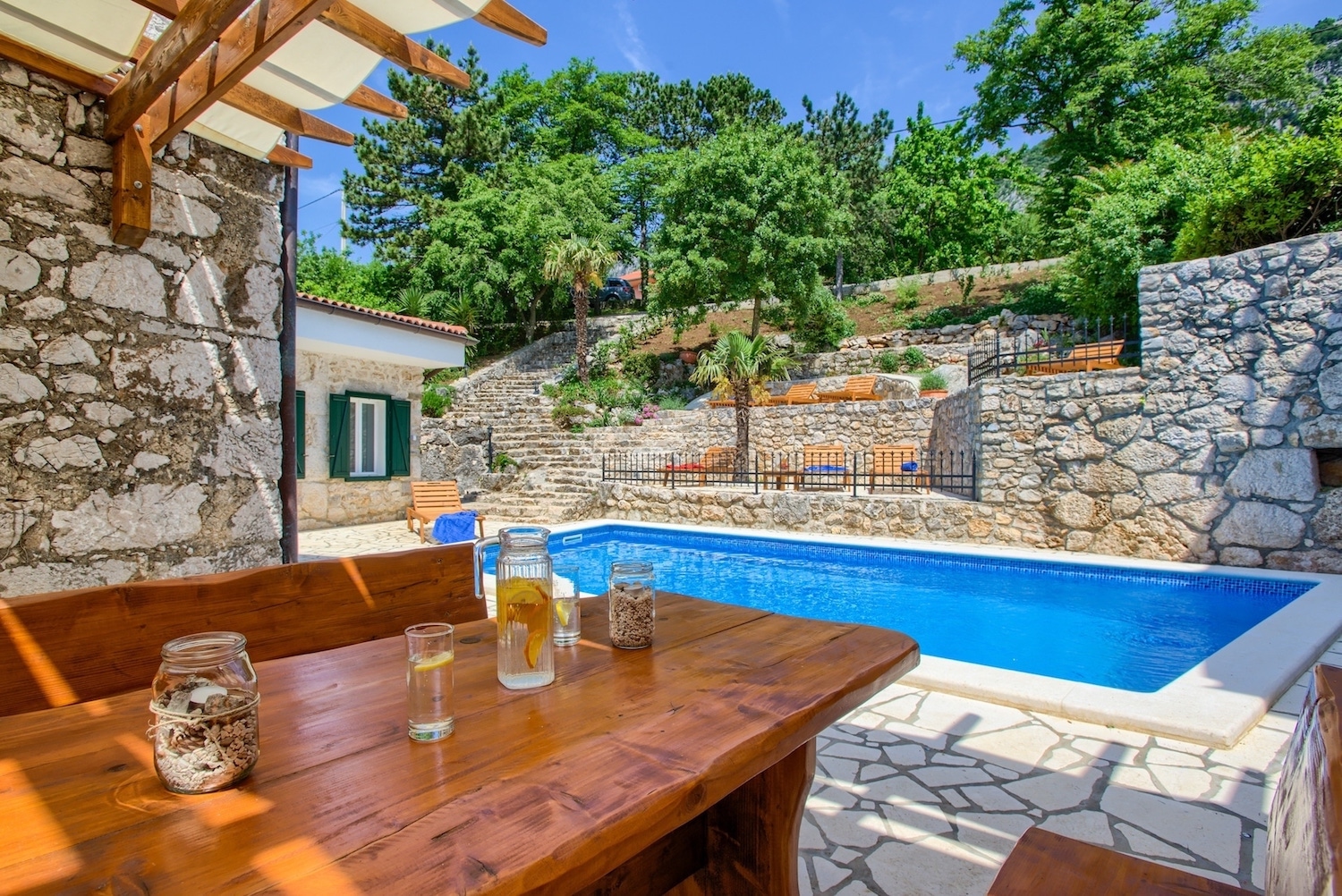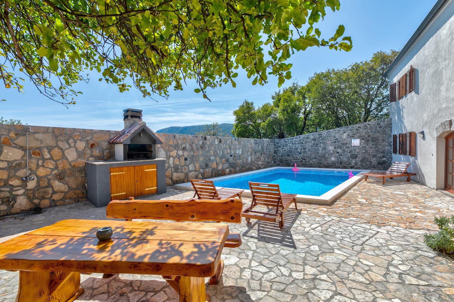 Nina je stara kamena kuća, koja je upravo obnovljena s velikom ljubavlju i pažnjom - staro je oživjelo, a moderno uskočilo. Idealan odmor za obitelj ili bliske prijatelje: kuća sa 4 spavaćih soba, 3 kupaone, velikim bazenom i osiguranom privatnošću. Kuća pruža smještaj za 10+2 osobe, a svaka prostorija ima svoj klima uređaj i Tv Sat. Wi-fi je osiguran, kao i parkirno mjesto. U blizini (500m) nalaze se lokalne trgovine, pekare, pošta, kafići. Kućni ljubimci su dobrodošli uz nadoplatu.